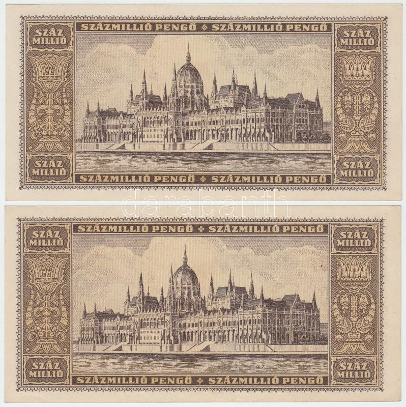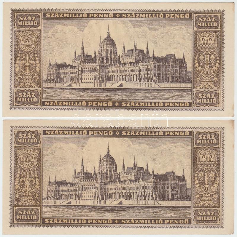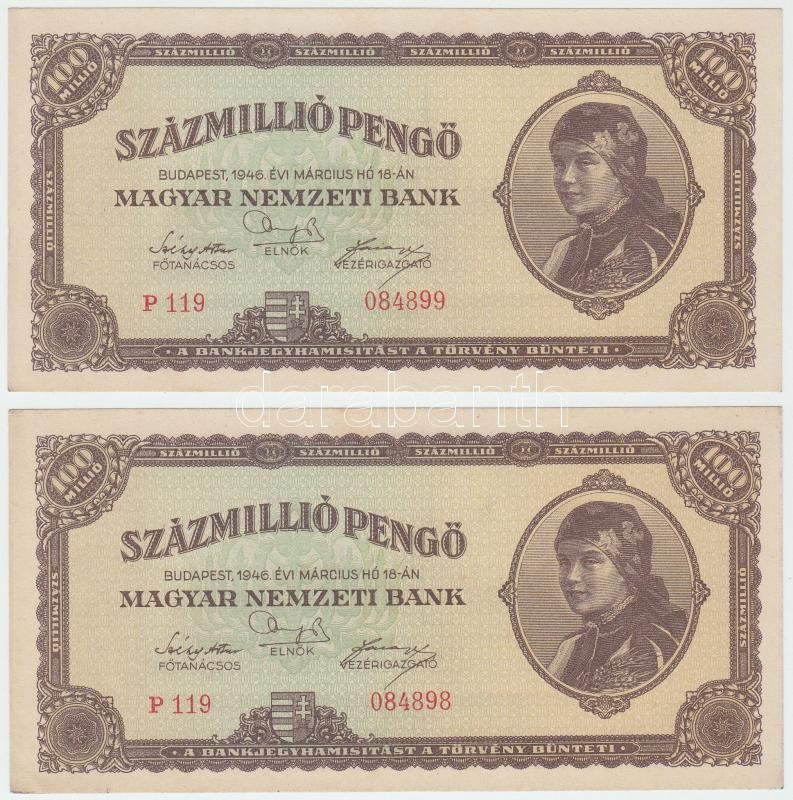 1946. 100.000.000P (4x) párban sorszámkövetők T:I,I- https://www.darabanth.com/de/262-Fernauktion/262.0/Numismatik/Ungarische-Banknoten~200008/1946-100000000P-4x-parban-sorszamkovetok-TI-I-~II1305246