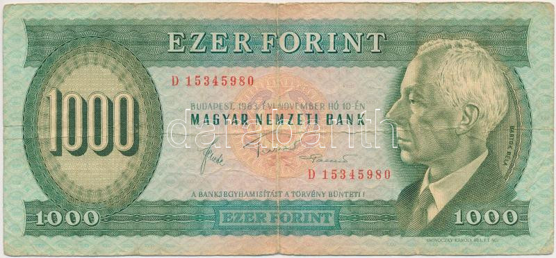 1983. november 10. 1000Ft "D" T:III https://www.darabanth.com/de/262-Fernauktion/262.0/Numismatik/Ungarische-Banknoten~200008/1983-november-10-1000Ft-D-TIII~II1300397