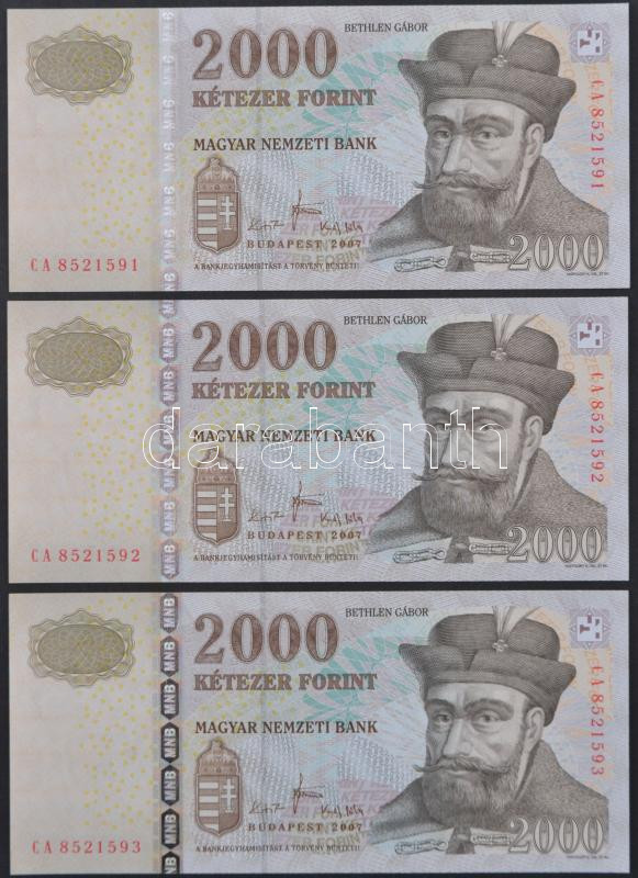 2007. 2000Ft "CA" (3x) sorszámkövetők T:I https://www.darabanth.com/de/262-Fernauktion/262.0/Numismatik/Ungarische-Banknoten~200008/2007-2000Ft-CA-3x-sorszamkovetok-TI~II1305665