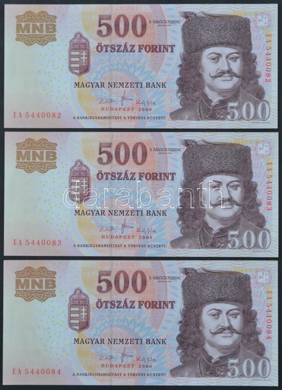 2008. 500Ft "EA" (3x) sorszámkövetők T:I https://www.darabanth.com/de/262-Fernauktion/262.0/Numismatik/Ungarische-Banknoten~200008/2008-500Ft-EA-3x-sorszamkovetok-TI~II1305680