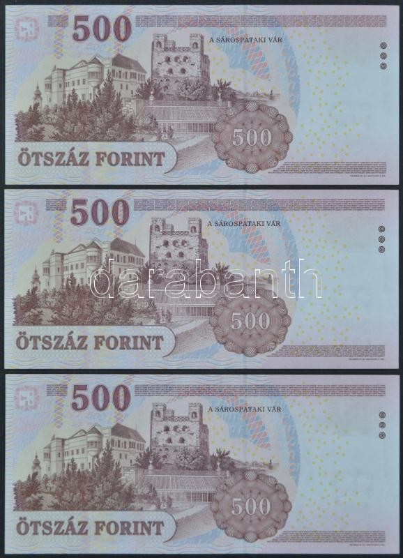 Beschreibung: 2008. 500Ft "EA" (3x) sorszámkövetők T:I