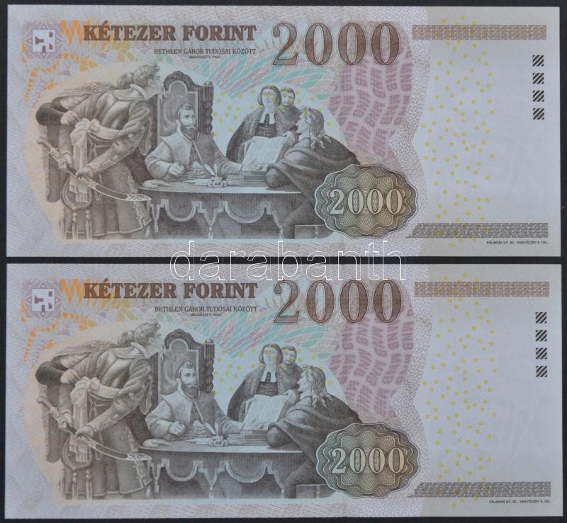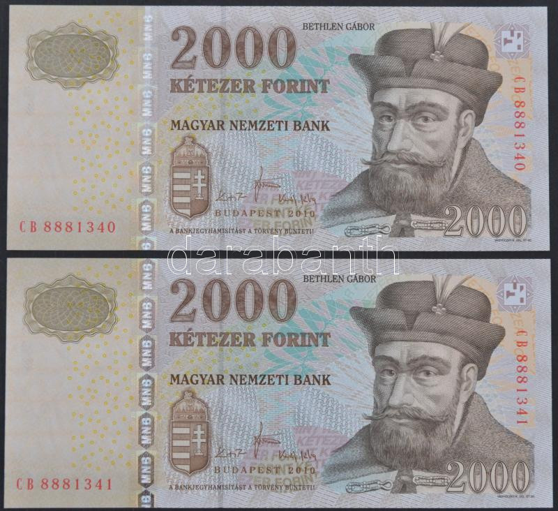 2010. 2000Ft "CB" (2x) sorszámkövetők T:I https://www.darabanth.com/de/262-Fernauktion/262.0/Numismatik/Ungarische-Banknoten~200008/2010-2000Ft-CB-2x-sorszamkovetok-TI~II1305687