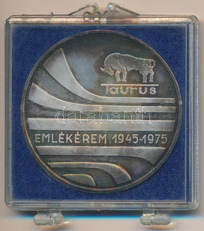 1975. "Taurus Emlékérem 1945-1975 / Alapítva 1882" ezüstözött fém emlékérem sérült eredeti tokban (42,5mm) T:1- (PP) oxidáció