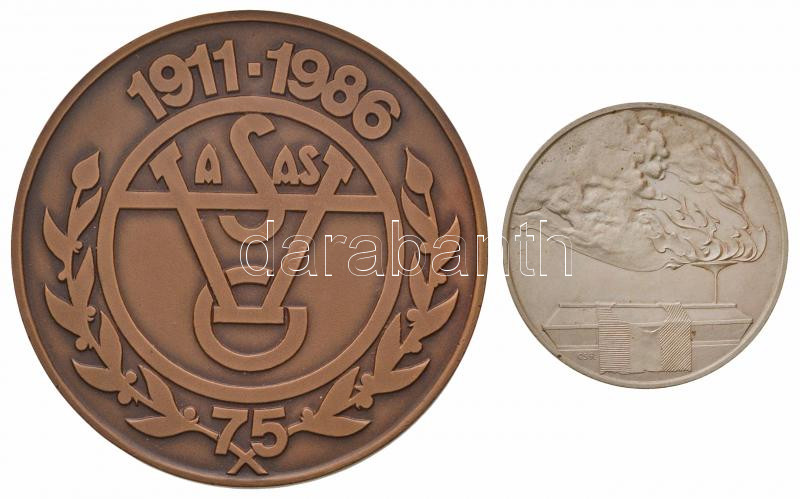 1986. "Vasas SC 1911-1986" Br emlékérem eredeti tokban (70mm) + Csíkszentmihályi Róbert (1940-) 1989. "1956-1989 Vértanúink emlékére" MDF alpakka emlékérem (42,5mm) T:1,BU
