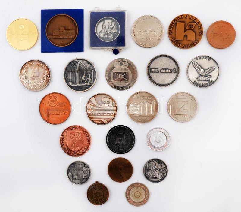 23db-os vegyes magyar emlékérem tétel, közte Somorjai László (1949-) DN "Székesfehérvár" ezüstözött fém emlékérem (32mm); 1996. "Böhler 100 éve Magyarországon" Ag emlékérem (31,1g/0.925/42,5mm) T:vegyes