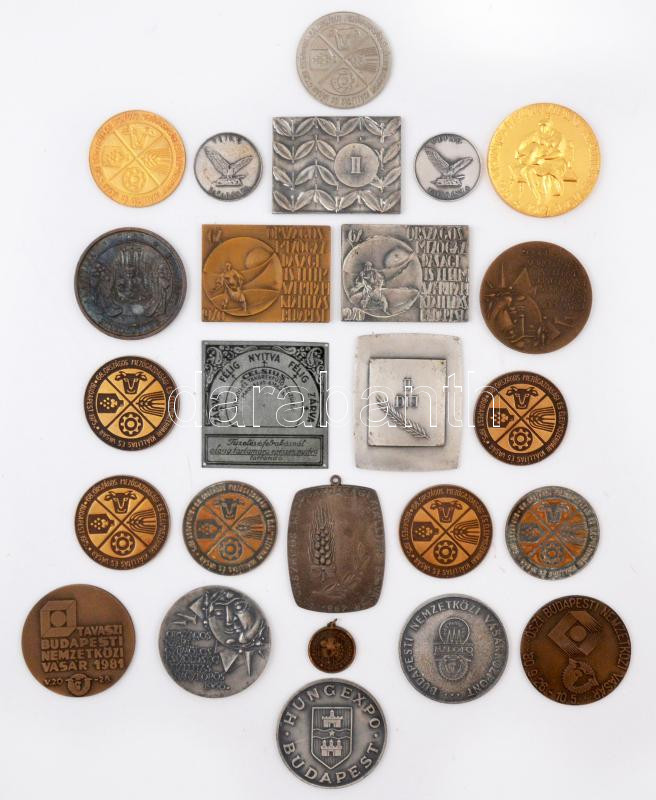25db-os emlékérem és plakett tétel főleg mezőgazdasági kiállítási emlékérmekkel, közte 1970. "67. Országos Mezőgazdasági és Élelmiszeripari Kiállítás Budapest" Br plakett (80x60mm) T:vegyes