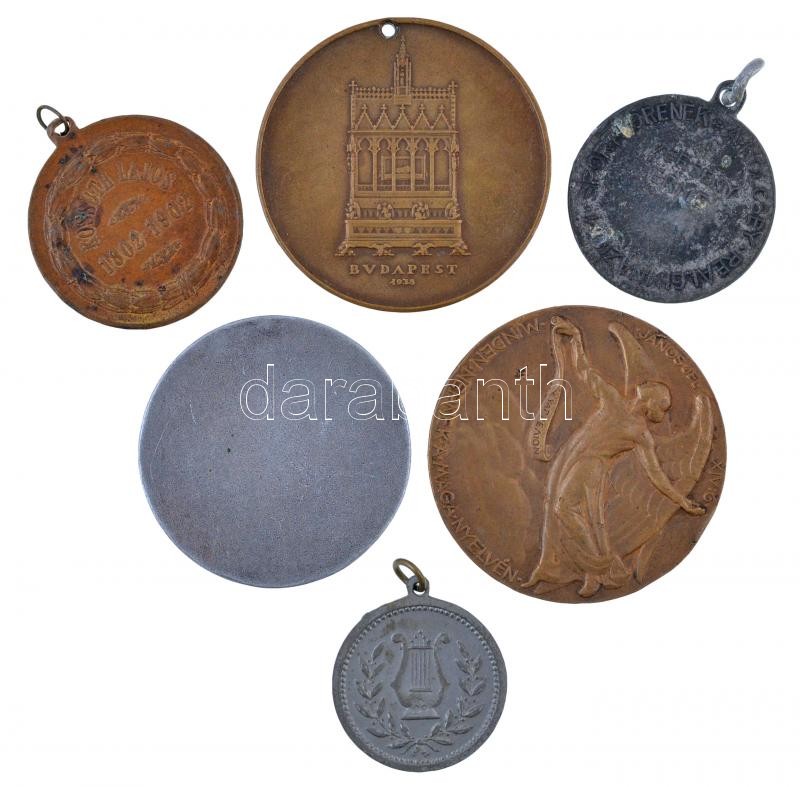 6db-os vegyes magyar emlékérem tétel, közte Berán Lajos (1882-1943) 1934. "Luther Márton" Br emlékérem. "D LUTHER MÁRTON BIBLIAFORDÍTÁSA NÉGYSZÁZ ÉVES 1534-1934 / MINDEN NÉPNEK A MAGA NYELVÉN - JÁNOS JEL XIV:6" (41mm), Szentesy Hiesz Géza (1896-1975) DN "Bartók" fém dalos érem füllel (24mm) T:vegyes