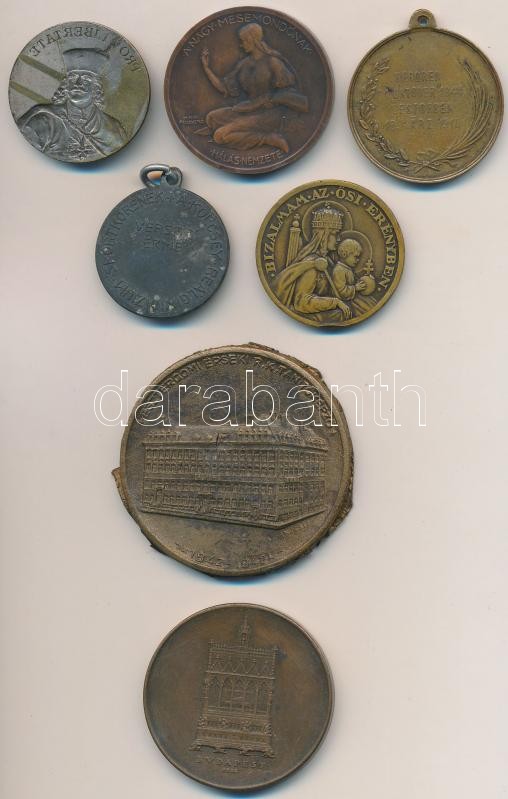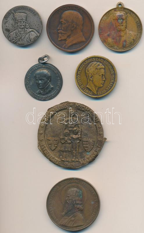 7db-os vegyes magyar emlékérem tétel, közte Berán Lajos (1882-1943) 1925. "Jókai Mór - A Nagy mesemondónak hálás nemzete" Br emlékérem (36mm); 1930. "II. Ottó Magyarország örökös királya / Bizalmam az ősi erényben" Br emlékérem (32mm) T:vegyes