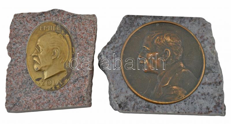 Beck Ötvös Fülöp (1873-1945) DN "Emile Zola" Br emlékplakett márványlapon (40x57mm a plakett) + Románia ~1952. "Ion Luca Caragiale" Br emlékplakett márványlapon (68mm a plakett) T:2-