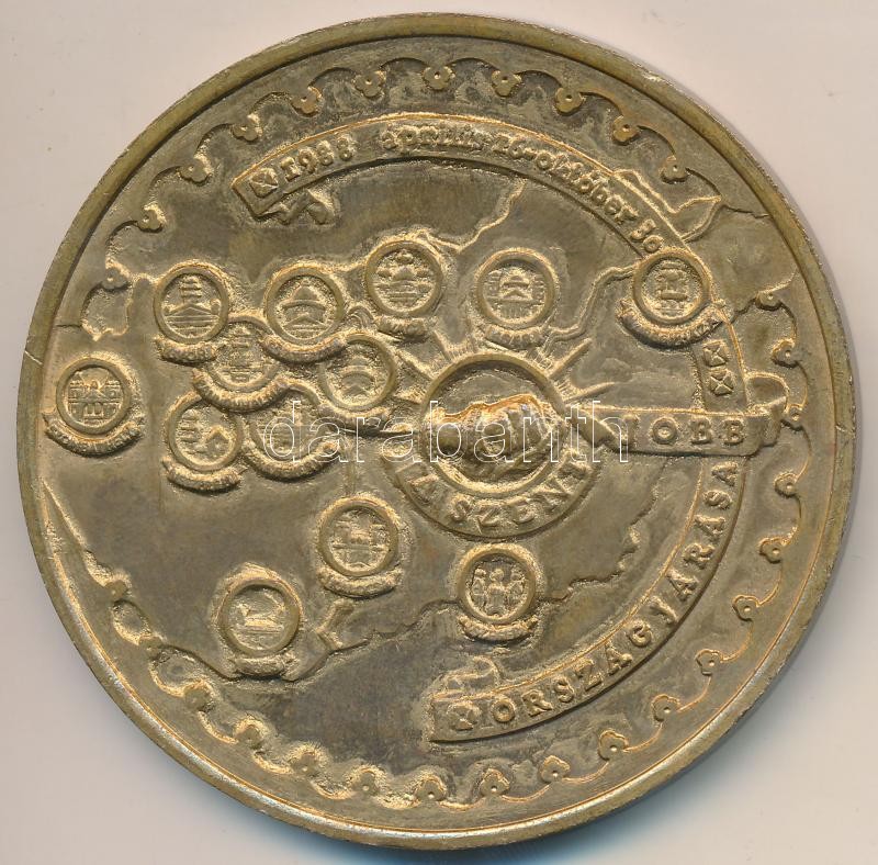 Beschreibung: Bozó Gyula (1913-2004) 1988. "Szent Jobb országjárása / Szent István halálának 950. évfordulója" aranyozott Br emlékérem (71mm) T:2-