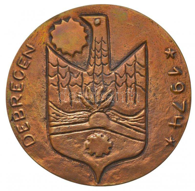 Cséri Lajos (1928-) 1974. "Debrecen 1974 / 1. Gyáregység átadása" Br plakett eredeti tokban (99mm) T:1
