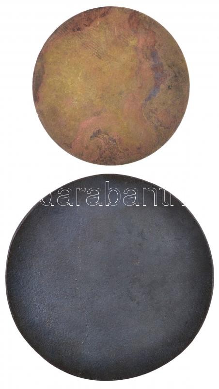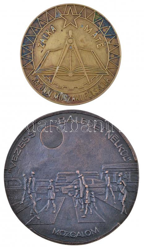 Rácz Edit (1936-) 1972. "Vezess Baleset Nélkül Mozgalom" Br emlékplakett (94mm) + DN "Zalka Máté Katonai Műszaki Főiskola" Br plakett (70mm) T:2