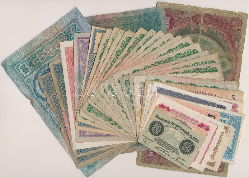 Ausztria ~1910-1940. 40db-os vegyes bankjegy néhány szükségpénzzel, 1912. 100K felülbélyegzéssel T:vegyes