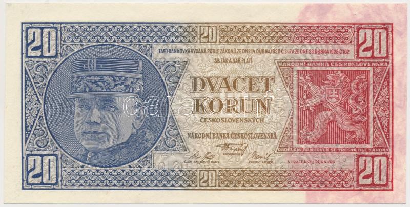 Czechoslovakia 1926. 20 Korun... https://www.darabanth.com/de/262-Fernauktion/262.0/Numismatik/Weltweit-Banknoten~200013/Csehszlovakia-1926-20K-festekhibas-TI--Czechoslovakia-1926-20-Korun-pigment-error-CAU~II1304607