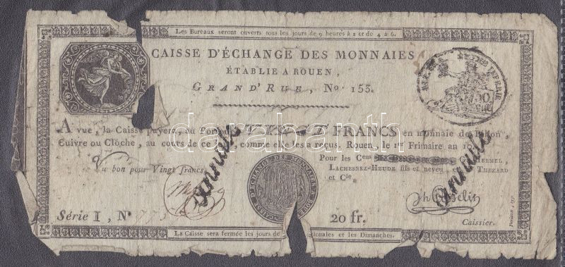 France / Rouen 1797-1803... https://www.darabanth.com/de/262-Fernauktion/262.0/Numismatik/Weltweit-Banknoten~200013/Franciaorszag-Rouen-1797-1803-20Fr-TIV-V--France-Rouen-1797-1803-20-Francs-CG-Pr--Krause-S2~II184509