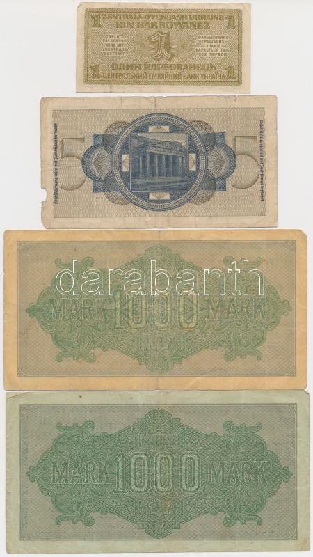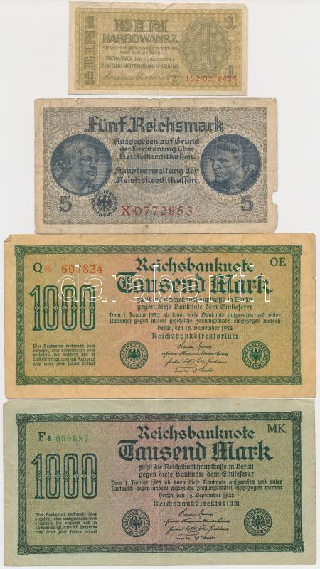 Németország / Weimari Köztársaság 1922. 1000M (2xklf) + Német 3. Birodalom / Német megszállt területek 1940-1945. 5M + Ukrajna / Német megszállás 1942. 1K T:III,III-