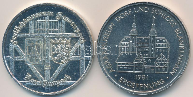 NSZK DN "Neu-Anspach - Hessenparki Szabadtéri Néprajzi Múzeum" fém emlékérem (35mm) + NDK 1981. "Blankenhaini Agrármúzeum megnyitása" fém emlékérem (35mm) T:2 FRG ND "Neu-Anspach - Open Air Museum of Hessenpark" metal medal (35mm) + GDR 1981. "Opening of the Agricultural Museum of Blankenhain" metal medal (35mm) C:XF
