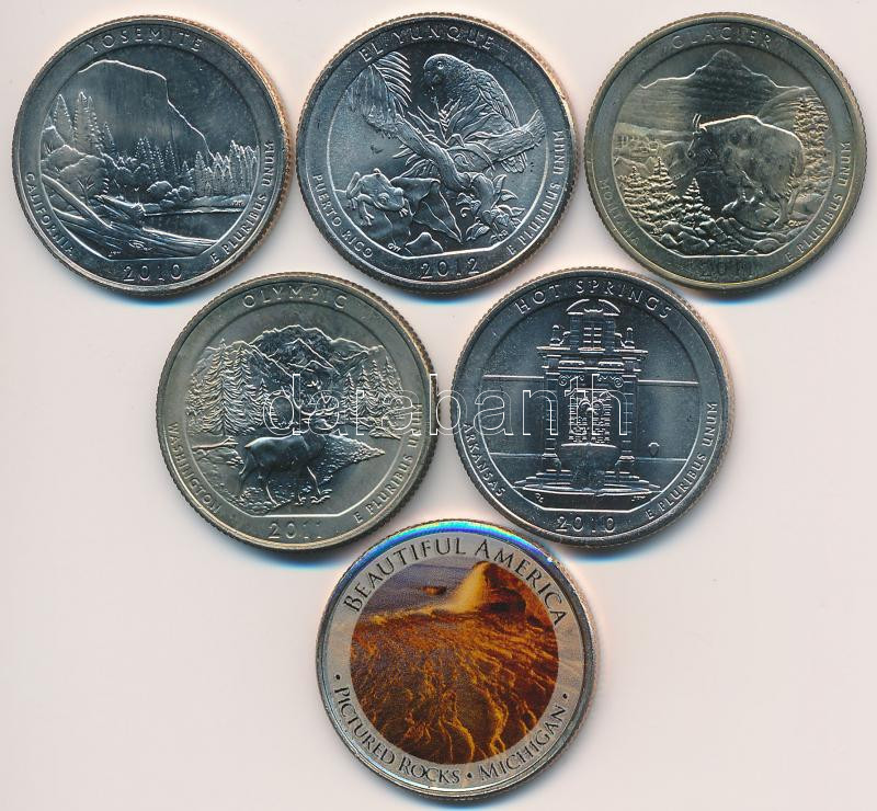 Amerikai Egyesült Államok 2010-2012. 1/4$ Cu-Ni "Gyönyörű Amerika" 5xklf db + 1/4$ "Gyönyörű Amerika / Michigan" multicolor T:1,1-