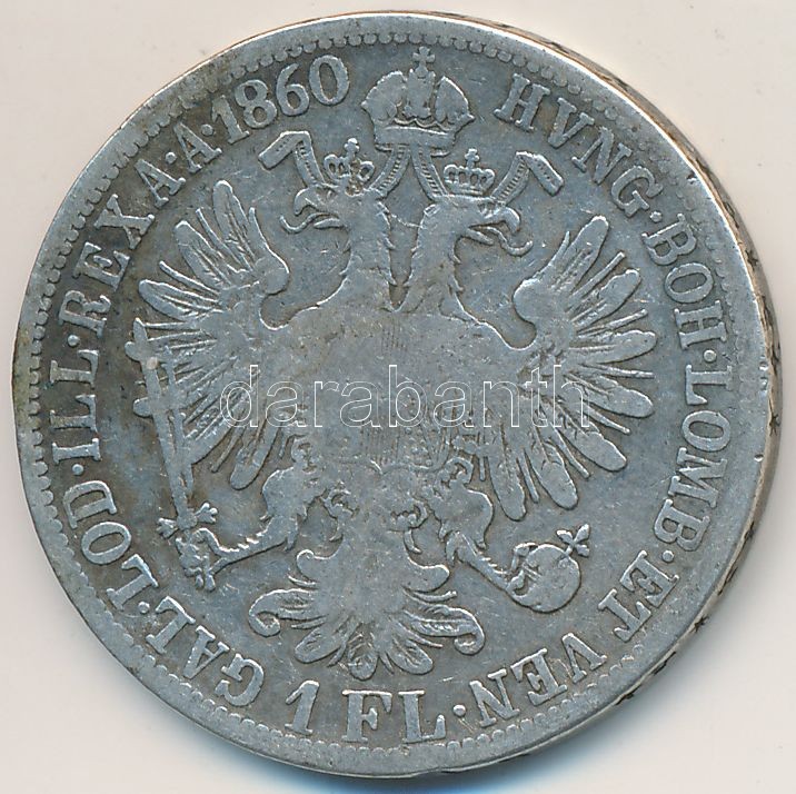 Austria 1860A ... https://www.darabanth.com/de/262-Fernauktion/262.0/Numismatik/Weltweit-Munzen~200017/Ausztria-1860A-1Fl-Ag-Ferenc-Jozsef-T2-3--Austria-1860A-1-Florin-Ag-Franz-Joseph-CVF-F~II1250810