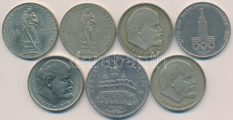 Szovjetunió 1965-1977. 1R (6x) + 1991. 5R "Moszkvai Mihály arkangyal katedrális" T:2,2- Soviet Union 1965-1977. 1 Rouble (6x) + 1991. 5 Roubles "Cathedral of the Archangel Michael" C:XF,VF