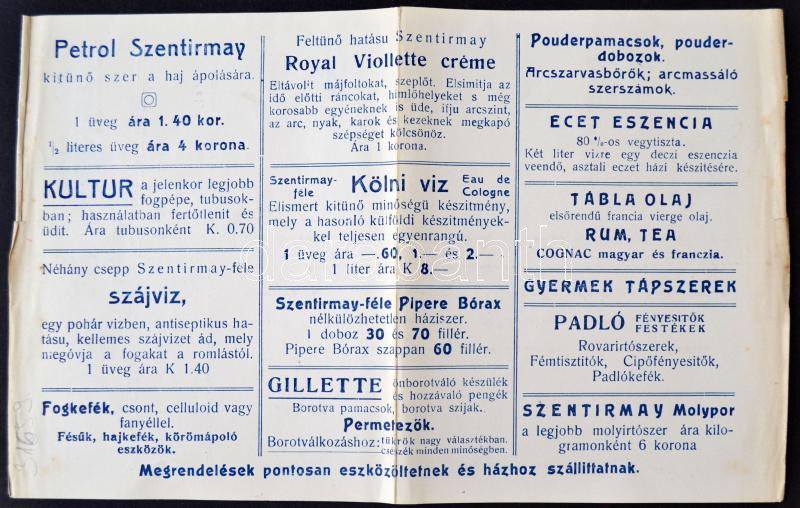 Beschreibung: 1919 Szentirmay Gyula, Royal drogeria, Bp., Erzsébet-körút 37. fejléces levél, verzón reklámokkal, 23x14cm