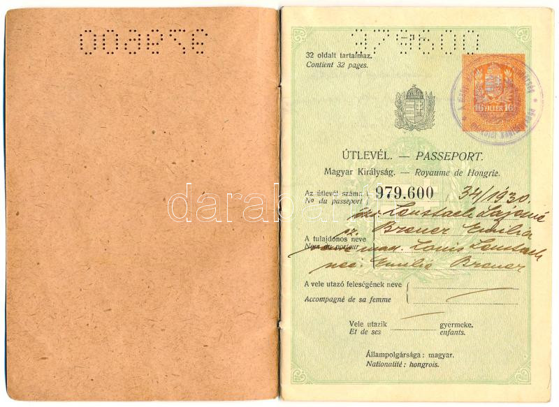 1930 A Magyar Királyság által kiállított útlevél fénykép nélkül / Hung... https://www.darabanth.com/de/263-Fernauktion/263.0/Andere-Sammelgebiete/Dokument~27/1930-A-Magyar-Kiralysag-altal-kiallitott-utlevel-fenykep-nelkul-Hungarian-passport~II1309387
