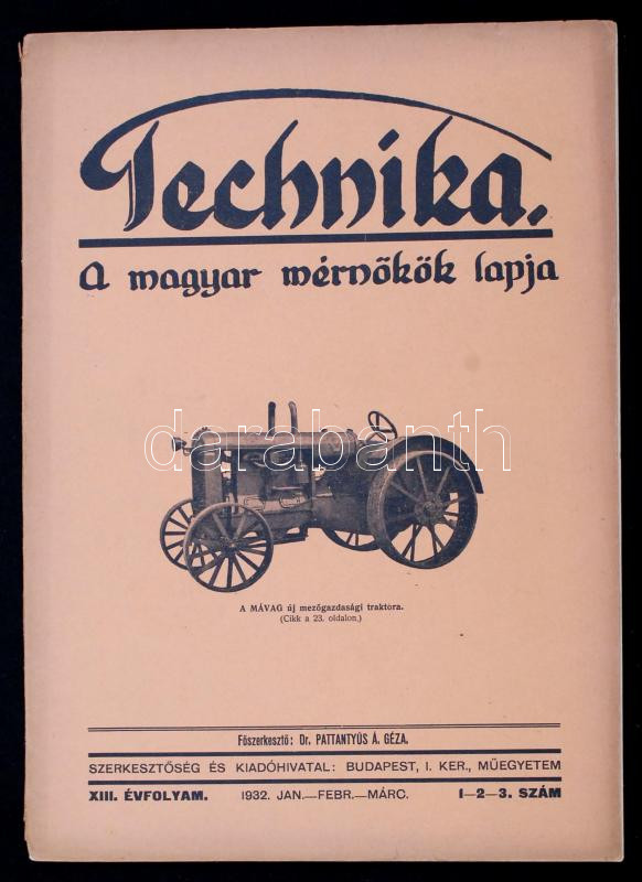 1932 Technika, A magyar mérnökök lapja. XIII. évf. 1-3. sz. https://www.darabanth.com/de/263-Fernauktion/263.0/Andere-Sammelgebiete/Drucksachen~12/1932-Technika-A-magyar-mernokok-lapja-XIII-evf-1-3-sz~II1310091