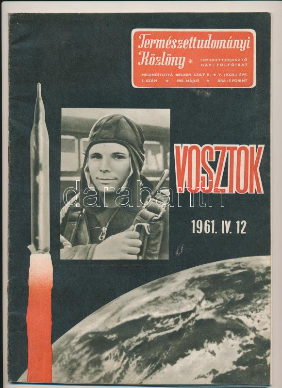 1961 A Természettudományi Közlöny V. évfolyamának 5. száma, címlapon G... https://www.darabanth.com/de/263-Fernauktion/263.0/Andere-Sammelgebiete/Drucksachen~12/1961-A-Termeszettudomanyi-Kozlony-V-evfolyamanak-5-szama-cimlapon-Gagarinnal-es-a-Voszto~II1310155