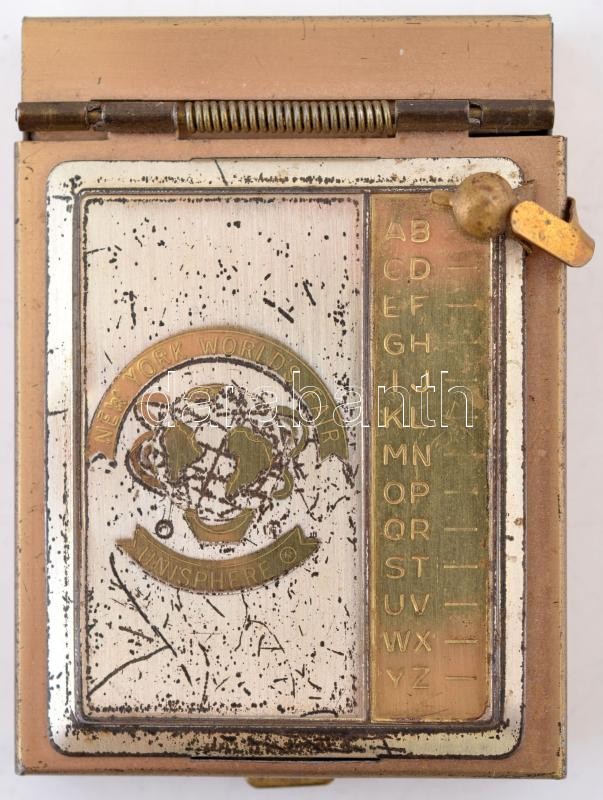 New York World's Fair Unisphere jegyzetfüzettartó, 6x4cm https://www.darabanth.com/de/263-Fernauktion/263.0/Andere-Sammelgebiete/Flohmarkt~15/New-York-Worlds-Fair-Unisphere-jegyzetfuzettarto-6x4cm~II1307241
