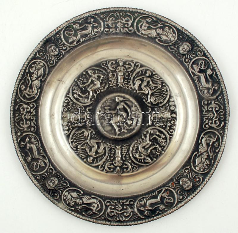 Beschreibung: Préselt fém falitányér, mitológiai jelenetekkel, d:33 cm