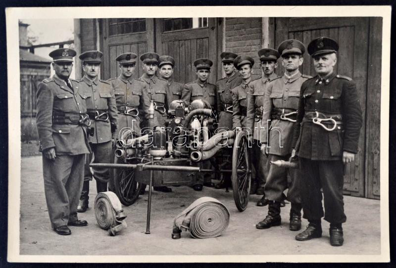 cca 1930-40 Tűzoltók fecskendővel, fotó, 9x13cm https://www.darabanth.com/de/263-Fernauktion/263.0/Andere-Sammelgebiete/Foto~33/cca-1930-40-Tuzoltok-fecskendovel-foto-9x13cm~II1311781