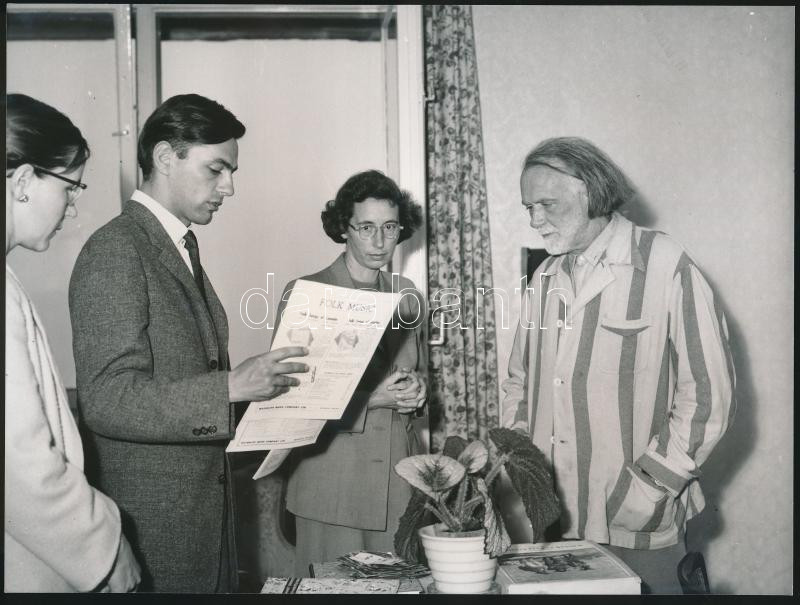 Beschreibung: cca 1965 Michael Olver és felesége könyveket ajándékoz Kodály Zoltánnak, feliratozott fotó, 18x24 cm