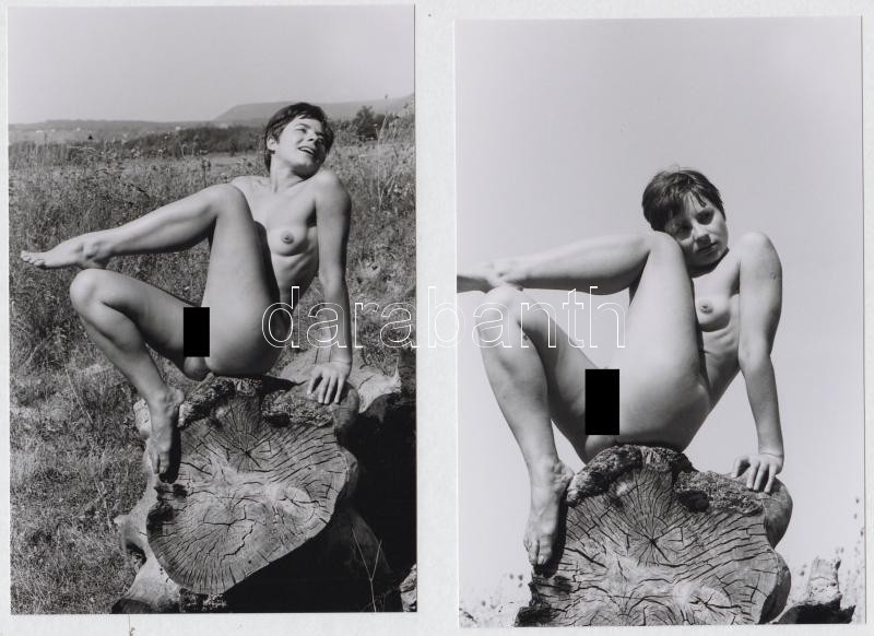 cca 1974 Formás fatörzs formás kis vendége, 9 db finoman erotikus fénykép, korabeli negatívokról készült modern nagyítások, 15x10 cm / 9 erotic photos, 15x10 cm