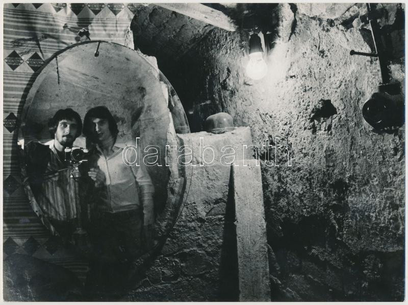 cca 1974 Tóth István (1954-2010): Egy ötlet, feliratozott vintage fotóművészeti alkotás, fiatalkori önarckép a székesfehérvári fotóművészről és barátjáról, 18x24 cm