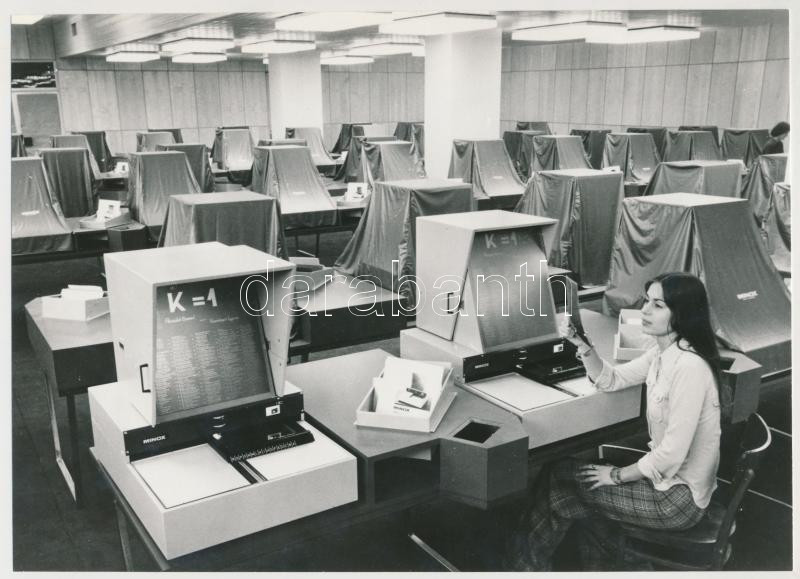 cca 1975 Budapest, a Belvárosi Távbeszélő Üzemben mikrofilm leolvasók ... https://www.darabanth.com/de/263-Fernauktion/263.0/Andere-Sammelgebiete/Foto~33/cca-1975-Budapest-a-Belvarosi-Tavbeszelo-Uzemben-mikrofilm-leolvasok-segitik-a-telefonszam-~II1306024