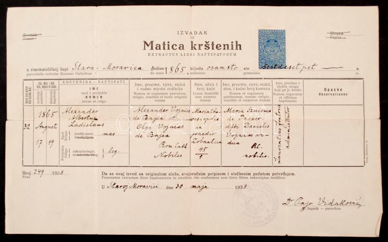 cca 1910-1940 Bajsai Vojnits Sándor és családjának okmányai és családy fotók, közöttük királyházi Ruffy Magda. Származási igazolások, állampolgársági bizonyítvány, egyéb