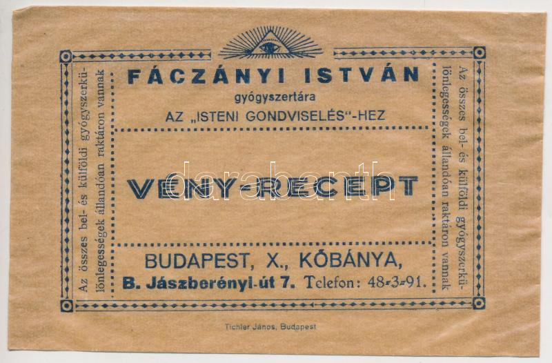 Fáczányi István "Isteni gondviseléshez" (Budapest X.) címzett gyógysze... https://www.darabanth.com/de/263-Fernauktion/263.0/Andere-Sammelgebiete/Werbungen~35/Faczanyi-Istvan-Isteni-gondviseleshez-Budapest-X-cimzett-gyogyszertaranak-receptboritC3~II1309349
