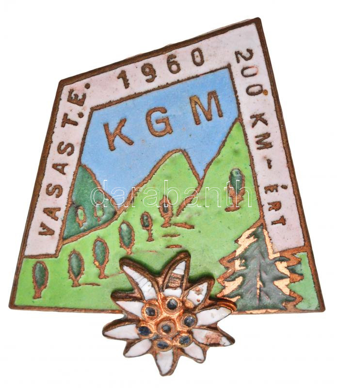 1960. "KGM Vasas T.E. 1960 200km-ért" zománcozott, havasi gyopárral dí... https://www.darabanth.com/de/263-Fernauktion/263.0/Numismatik/Faleristik-Auszeichnungen-Medaillen-Ordnen~300017/1960-KGM-Vasas-TE-1960-200km-ert-zomancozott-havasi-gyoparral-diszitett-jelveny-30x30mm~II1307473