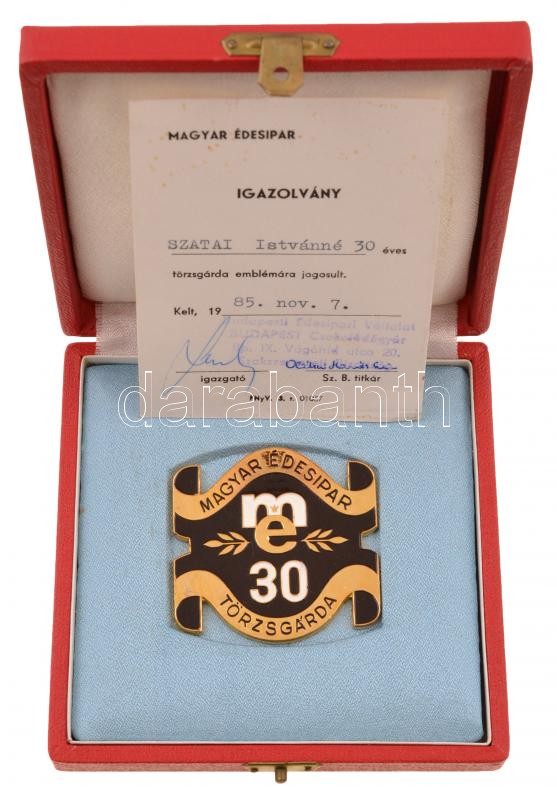 1985 "Magyar Édesipar Törzsgárda 30" aranyozott, zománcozott fém plake... https://www.darabanth.com/de/263-Fernauktion/263.0/Numismatik/Faleristik-Auszeichnungen-Medaillen-Ordnen~300017/1985-Magyar-Edesipar-Torzsgarda-30-aranyozott-zomancozott-fem-plakett-30-ev-utan-tokban-i~II1307701