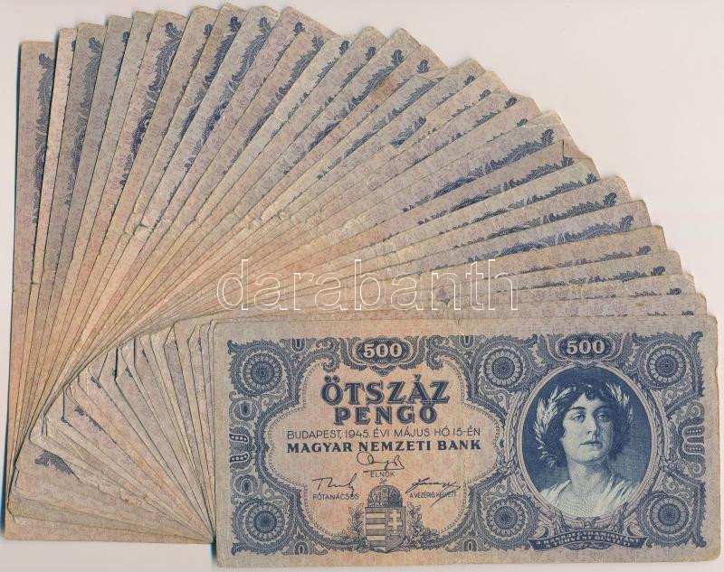 1945. 500P (30x) T:vegyes https://www.darabanth.com/de/263-Fernauktion/263.0/Numismatik/Ungarische-Banknoten~300007/1945-500P-30x-Tvegyes~II1307601