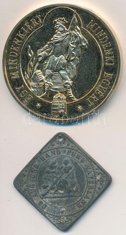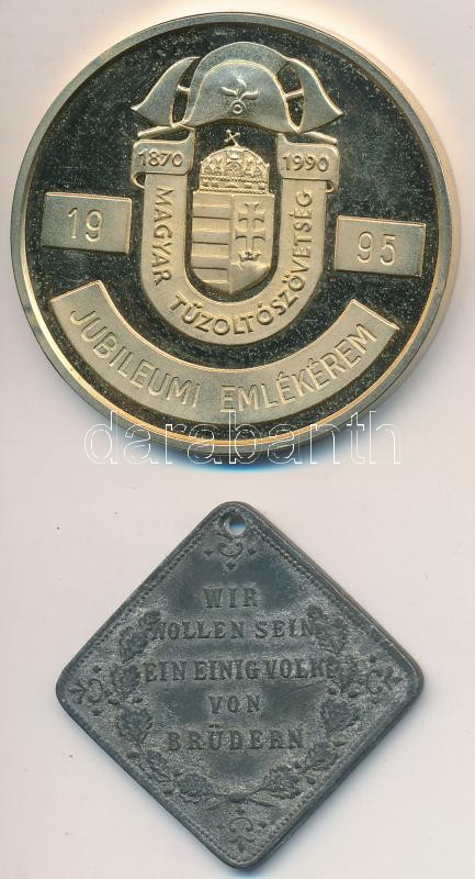 Beschreibung: 1995. "Magyar Tűzoltószövetség - Jubileumi Emlékérem" aranyozott fém emlékérem (43mm) + Német Birodalom DN Fém lövész érem (35mm) lyukkal T:2(PP),2-