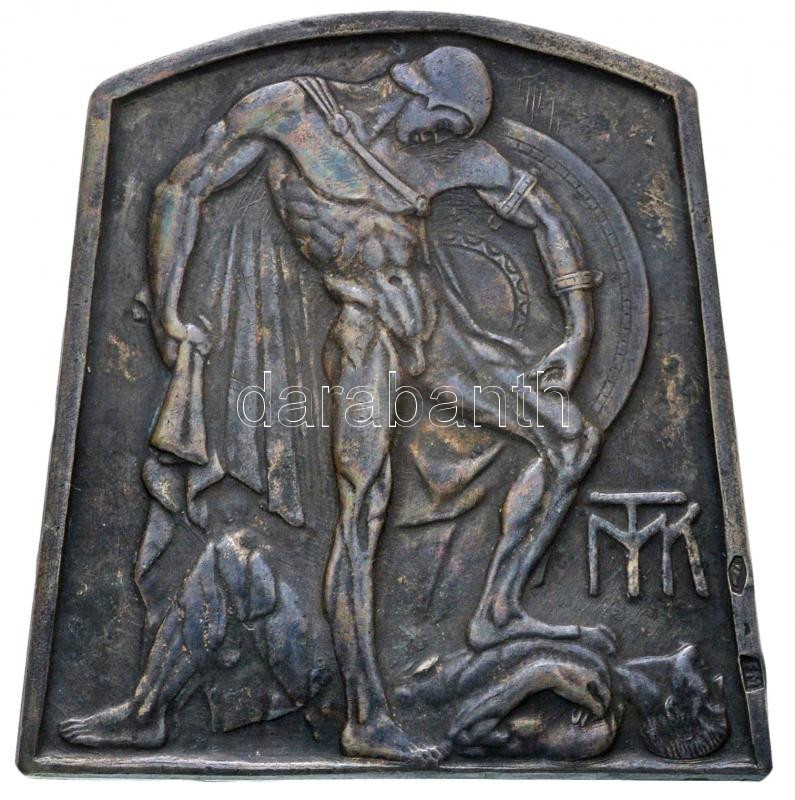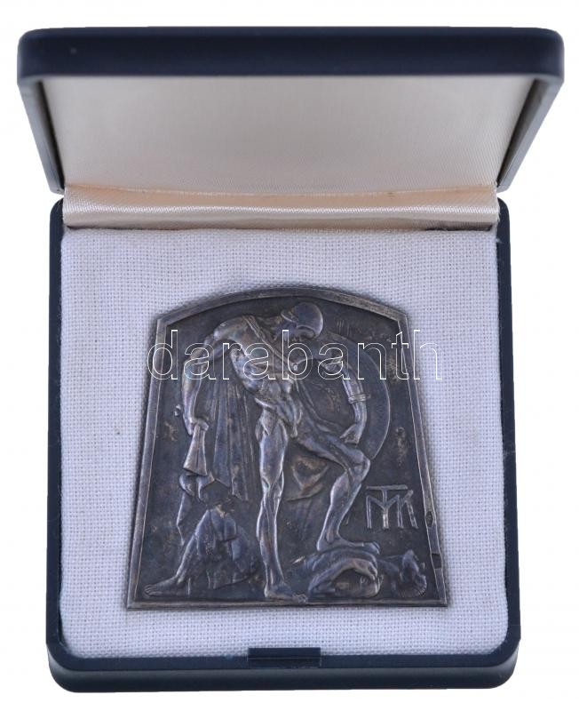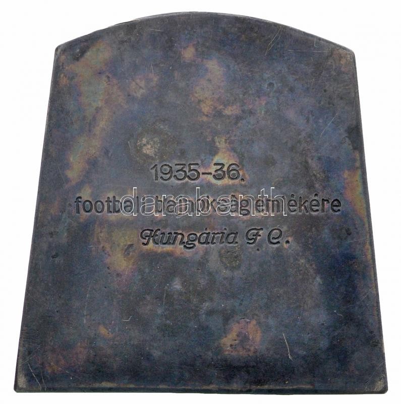 Körmendi Frimm Jenő (1886-1959) 1938. "MTK (Magyar Testgyakorlók Köre) 1888-1938 / 1935-36. football bajnokság emlékére Hungária F.C." fémjelzett Ag emlékplakett szignó nélkül, gyűjtői tokban (38,12g/0.800/44,5x44mm) T:2