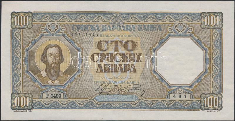 Serbia / German occupatio... https://www.darabanth.com/de/263-Fernauktion/263.0/Numismatik/Weltweit-Banknoten~300012/Szerbia-Nemet-megszallas-1943-100D-TI---Serbia-German-occupation-1943-100-Dinara-CAU~II1309853