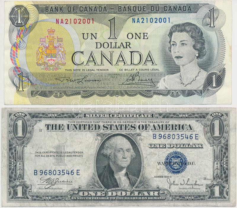 Vegyes: Amerikai Egyesült Államok 1935C 1$ kék pecséttel + Kanada 1973. 1$ vágott T:III
