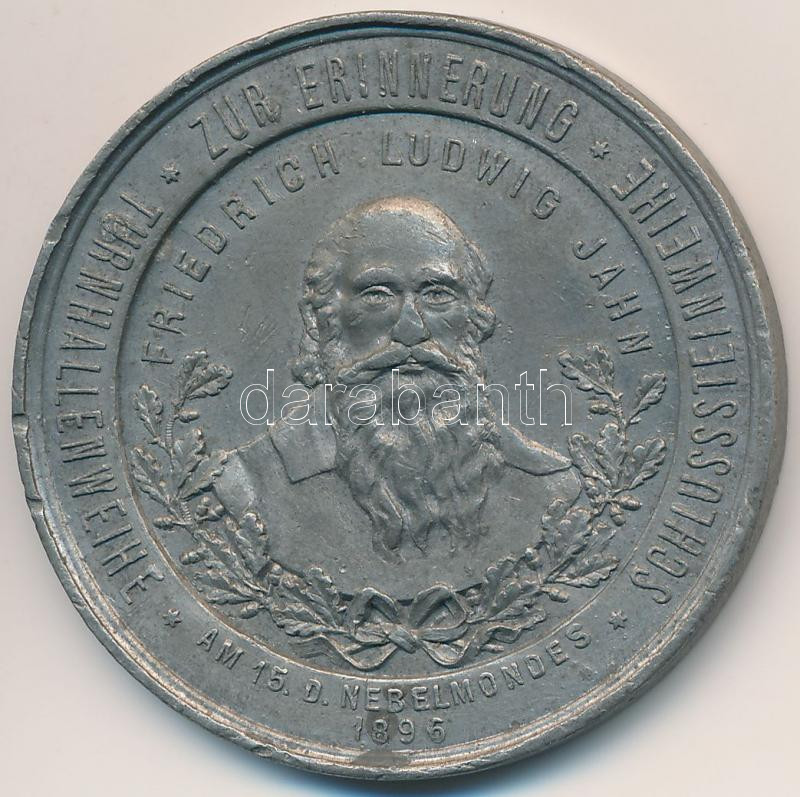 Német Birodalom 1896. "Friedrich Ludwig Jahn" Sn emlékérem (42,5mm) T:2- ph. German Empire 1896. "Friedrich Ludwig Jahn - Turnhallenweihe - Zur Erinnerung - Schlusssteinweihe" Sn medallion (42,5mm) C:VF edge error