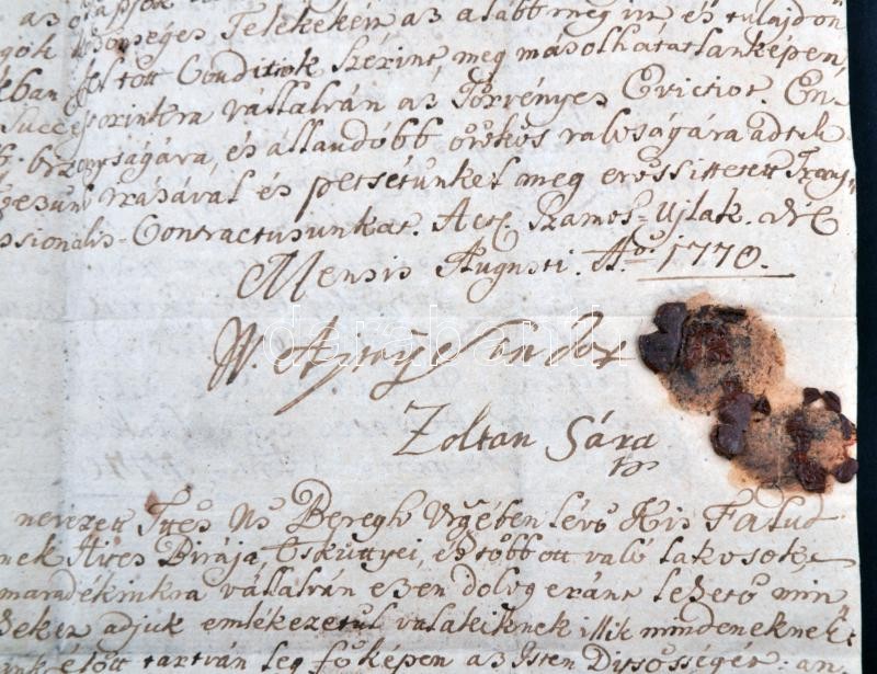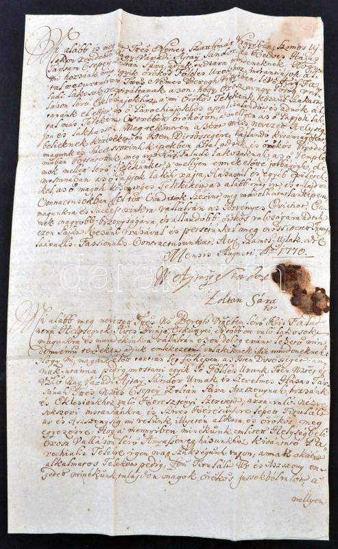 1770 Szamosújlak, Ajtay Sándor földbirtokos és felesége, Zoltán Sára r... https://www.darabanth.com/de/264-Fernauktion/264.0/Andere-Sammelgebiete/Dokument~15/1770-Szamosujlak-Ajtay-Sandor-foldbirtokos-es-felesege-Zoltan-Sara-rendelkezese-a-kisfalud~II1314347
