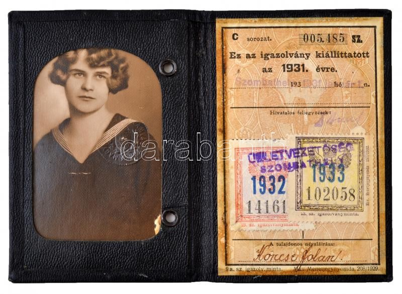1931 Igazolvány Magyar Királyi Államvasutak, arcképes, 11x8cm https://www.darabanth.com/de/264-Fernauktion/264.0/Andere-Sammelgebiete/Dokument~15/1931-Igazolvany-Magyar-Kiralyi-Allamvasutak-arckepes-11x8cm~II1316446