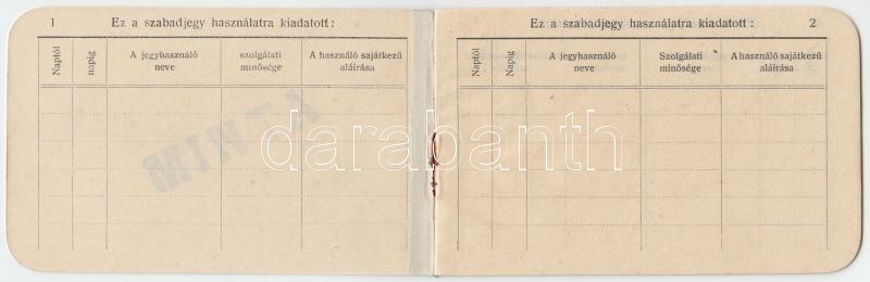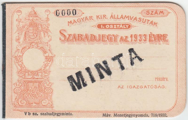 1933 A Magyar Királyi Államvasutak I. osztályára érvényes szabadjegy m... https://www.darabanth.com/de/264-Fernauktion/264.0/Andere-Sammelgebiete/Dokument~15/1933-A-Magyar-Kiralyi-Allamvasutak-I-osztalyara-ervenyes-szabadjegy-mintapeldanya~II1315035