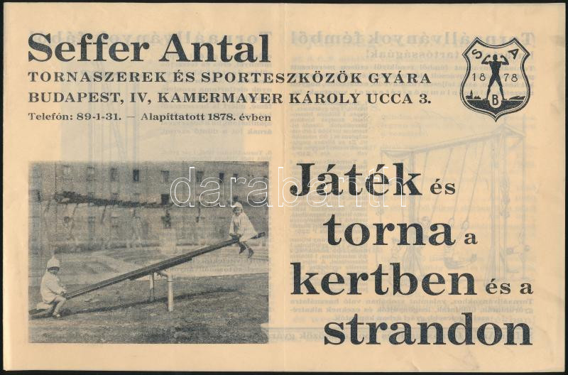1932 Seffer Antal tornaszerek és sporteszközök gyára képes reklám nyom... https://www.darabanth.com/de/264-Fernauktion/264.0/Andere-Sammelgebiete/Drucksachen~25/1932-Seffer-Antal-tornaszerek-es-sporteszkozok-gyara-kepes-reklam-nyomtatvany~II1317222