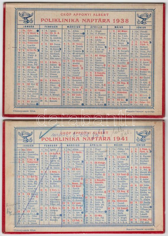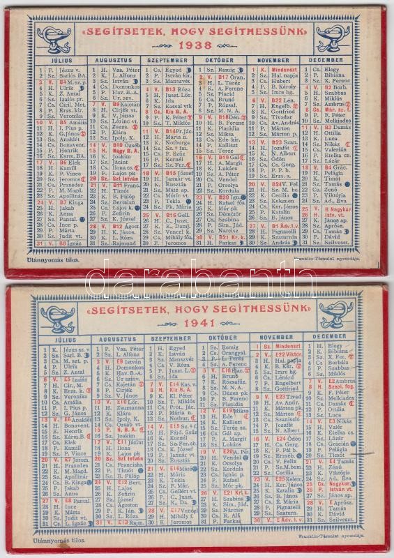 1938, 1941 "Segítsetek, hogy segíthessünk", a Gróf Apponyi Albert Poli... https://www.darabanth.com/de/264-Fernauktion/264.0/Andere-Sammelgebiete/Drucksachen~25/1938-1941-Segitsetek-hogy-segithessunk-a-Grof-Apponyi-Albert-Poliklinika-asztali-naptara-~II1316790